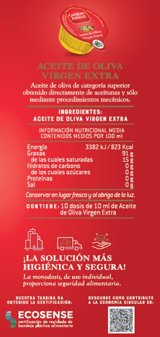 Capricho Andaluz presenta su bolsa de 10 monodosis de Aceite de Oliva Virgen Extra, cada una con 10 ml de AOVE puro de origen español. Este formato práctico ofrece porciones individuales ideales para hostelería profesional, oficinas, tápers, picnics o uso doméstico diario, facilitando el transporte sin derrames ni complicaciones. Producido y envasado en España, garantiza frescura y calidad en cada tarrina, perfecto para aliñar ensaladas, desayunos o platos en restaurantes y hogares. Las monodosis de aceite oliva virgen extra son versátiles para catering, room service o comidas preparadas, con raciones exactas para cualquier ocasión. Elige Capricho Andaluz para una solución higiénica y conveniente de tarrinas aceite oliva, lista para llevar y usar en el momento. Bolsa de 10 unidades de 10 ml, diseñada para profesionales y familias que buscan practicidad sin renunciar a la autenticidad del AOVE español.
