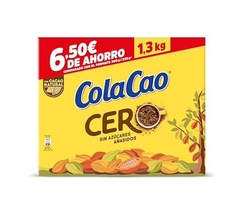 Descubre el delicioso sabor del cacao natural sin azúcares añadidos con ColaCao Cero. Este formato ahorro de 1,3 kg (equivalente a 92 raciones) es perfecto para los amantes del chocolate que buscan cuidar su ingesta de azúcar. Elaborado con cacao natural de alta calidad y sin aditivos artificiales, ofrece el auténtico sabor de ColaCao que todos conocemos y amamos, pero sin azúcares añadidos. Ideal para preparar con leche caliente o fría, este cacao soluble te permite disfrutar de una bebida reconfortante en cualquier momento del día. Su práctico envase familiar te permite ahorrar mientras disfrutas de tu bebida favorita. Perfecto para toda la familia, especialmente para aquellos que desean reducir su consumo de azúcar sin renunciar al placer del chocolate. La preparación es muy sencilla: solo necesitas añadir el producto a tu leche preferida y estará listo para disfrutar.