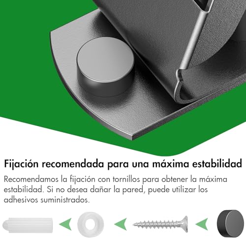 Notas importantes: Para el montaje con almohadillas adhesivas, recomendamos una capacidad de carga no superior a 3 kg por gancho/soporte. El diámetro del mango debe estar comprendido entre un mínimo de 15 mm y un máximo de 30 mm. Los mangos más gruesos pueden dañar el soporte de la mopa. El uso con almohadillas adhesivas sólo requiere superficies estables, uniformes y lisas como baldosas, cristal, metal, plástico o madera lisa.