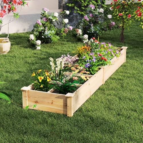 COSTWAY Huerto Urbano Exterior, 228x62x25 cm, Jardinería Elevada de Madera, Cama Elevada de Jardín con 2 Cajas de Cultivo y Divisores para Flores, Vegetales, Jardineras para Patio Césped (Natural)