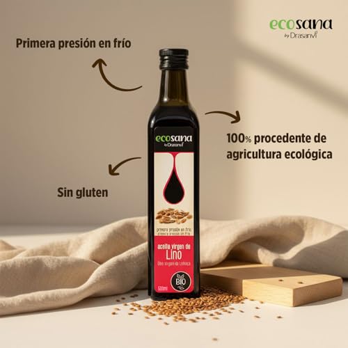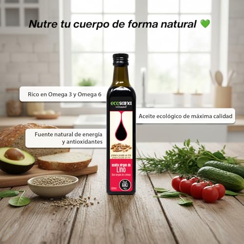 🌱 Descubre el Aceite Virgen de Lino de ECOSANA, un producto de la Agricultura Ecológica. Este aceite se obtiene mediante procesos mecánicos y filtración, sin someterse a altas temperaturas, para conservar todas las propiedades naturales del lino. Rico en ácidos grasos esenciales, vitaminas y antioxidantes, es un aliado para tu salud. Su consumo en crudo es la mejor manera de aprovechar al máximo sus beneficios. Agrégalo a tus ensaladas, platos de verduras o incluso a tus batidos para realzar su sabor y nutrir tu cuerpo de forma natural. ECOSANA te invita a cuidarte de adentro hacia afuera. Es una opción deliciosa y saludable para enriquecer tu dieta diaria. Sus propiedades antiinflamatorias y cardiovasculares lo convierten en un complemento ideal para un estilo de vida equilibrado. Para conservar sus propiedades nutritivas, evita su uso en altas temperaturas. Opta por disfrutarlo en su estado natural, añadiéndolo a tus platos después del cocinado. De esta manera, no solo mantendrás intacto su sabor y aroma, sino también sus beneficios para tu salud y bienestar.🥗🍽️