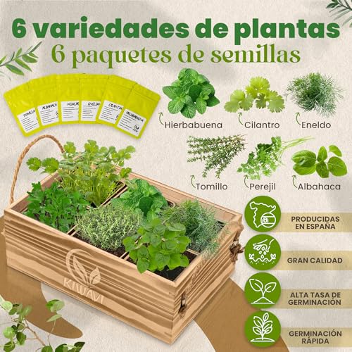 Mini Huerto Urbano para Interior – Kit de Cultivo de Plantas Aromáticas y Culinarias (Albahaca, Perejil, Cilantro, Hierbabuena, Eneldo, Tomillo) | Huerto en Casa con Semillas
