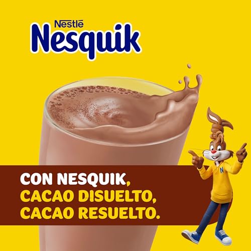 Para disfrutar de tu bebida chocolate Nesquik, añade dos cucharaditas colmadas cacao soluble instantáneo Nesquik a 200 ml leche semidesnatada caliente o fría y remueve hasta obtener una mezcla uniforme. También puedes utilizar desnatada deslactosada si prefieres.