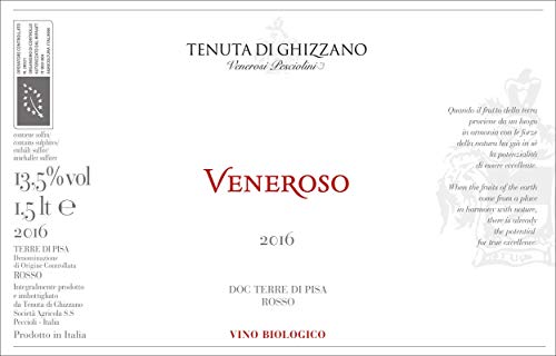 VENEROSO: Es el vino histórico de la Finca Ghizzano de la familia Venerosi Pesciolini, así como el más representativo de la empresa. Desde 1985 el Veneroso viene interpretando, con su elegante fruta y su mineralidad, las características del terruño del que nace. Principalmente de uvas Sangiovese con un pequeño porcentaje de Cabernet Sauvignon, el Veneroso se ha convertido en un punto de referencia para toda la zona vitivinícola.