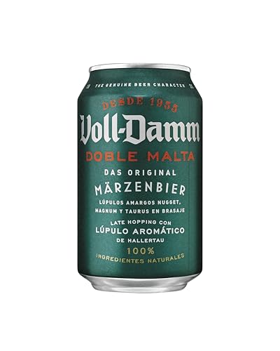 y rico, y una espuma densa con un toque amargo. Su distintiva doble malta, complementada con arroz, maíz y lúpulos Nugget, Magnum y Taurus, le otorga un perfil de sabor único, rico en tonos cítricos y frutales. Su apariencia cautiva con un color roble y reflejos anaranjados, mientras que su aroma afrutado, con notas de melocotón y manzana, enriquece la experiencia sensorial. Ideal para acompañar una variedad de platos, Voll-Damm se presenta en packs de 24 latas de 330 ml, recomendados para ser disfrutados entre 4 y 6ºC. Detrás de esta cerveza está la tradición de Damm, fundada en 1876, dedicada a realzar momentos de disfrute con productos de calidad, combinando su pasión por la cerveza con un firme compromiso con su entorno. Voll-Damm no es solo una cerveza; es una experiencia sensorial que define cada momento con excelencia y carácter.