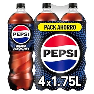 Pepsi zero Refresco de cola con cero azúcar y cero calorías, packs de 4 botellas de 1.75 litros, 7 litros en total